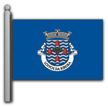 奥拉戈(Orago)-圣玛丽亚马达莱娜(Santa Maria Madalena)地区-2.5平方公里徽章和国旗武器的纹章订购武器-银盾,蓝色波浪形波浪形,上装着一串紫色的葡萄,绿叶,在四个红色瓷砖之间,都排成一排。三座塔的银壁画冠。白色清单,黑色标题:“ LOIVOS DA RIBEIRA”。